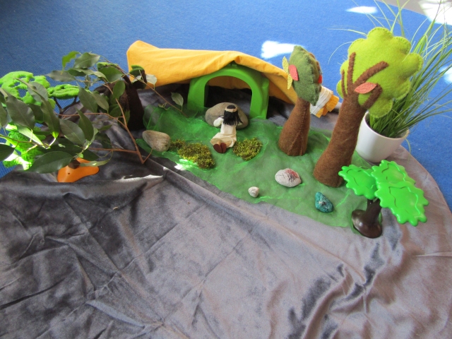 Im Anschluss werden die Kinder in Kleingruppen aufgeteilt, in denen die Geschichte nachbesprochen wird und es passende Bastel-, Spiel- und Malangebote gibt.