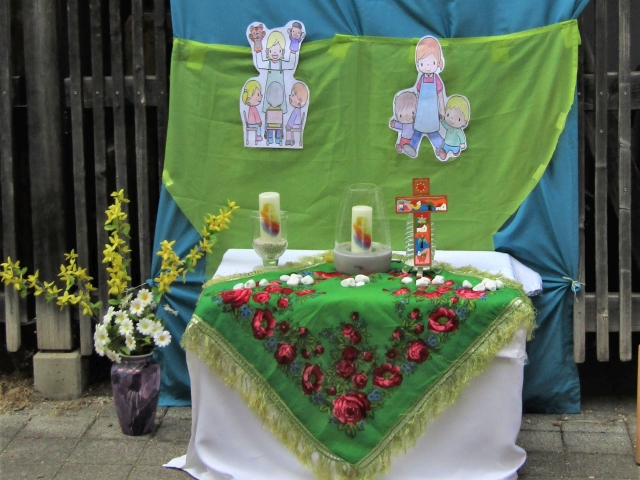 Um 16.00 Uhr müssen alle Eltern anwesend sein und sich auf dem Hof vor dem Kinderland versammeln. Die Kinder werden bitte nicht vorher abgeholt, weil alle Kinder gemeinsam mit ihrer Gruppe, hintereinander aus dem Kinderland ausziehen und sich im Hof versammeln.